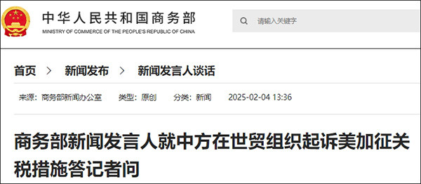 据商务部网站2月4日消息,商务部新闻发言人就中方在世贸组织起诉美加征关税措施答记者问。